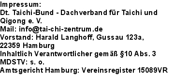 Veranstalter ist das Tai Chi Zentrum Hamburg ev (Schule des Deutschen Tachi-Bundes DTB ev).